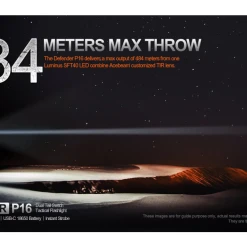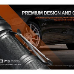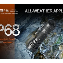 156.2g, 1800 Lumens, 58,564 cd: Acebeam Defender P16 is Acebeam’s first dual switch tactical torch with one-touch activation for strobe, turbo, and low modes. Quick and easy operation lets you choose from four lighting modes and a strobe mode. Comes with a convenient-to-charge Acebeam 18650 Li-ion battery that can be charged via the USB-C cable. Rugged and durable with IP68 waterproof rating and impact resistance up to 1.5 metres. The compact stainless steel strike bezel body makes it ideal for emergencies, self-defense, assault operations, outdoor activities, maintenance checks, patrols, and more. Dual switch 1800 lumen tactical torch!