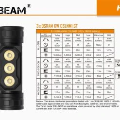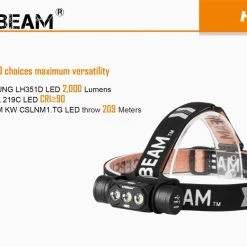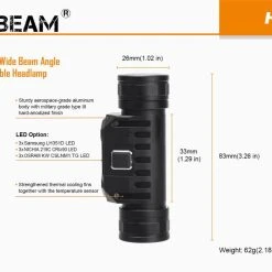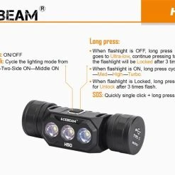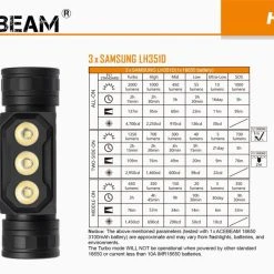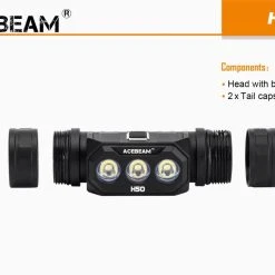 62g, 2000 Lumens: The AceBeam H50 is 125° wide angle beam rechargeable triple LED headlamp. It is lightweight and powered by single 18650 Li-ion rechargeable battery. H50 has multiple LED choices for various operations; OSRAM with 209 metres throw, Samsung for 2000 lumens output and Nichia for acurate colour rendering. Single button interface for controlling brightness output. It comes with comfortable reflective headband. Triple LEDs USB Type-C Rechargeable Headlamp!