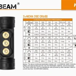 Turbo: 850 Lumens – 2 Hour 30 Minutes