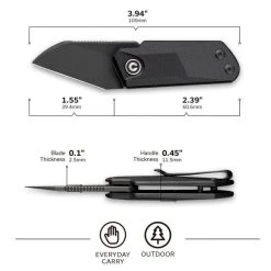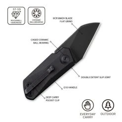 This model of the Ki-V has a black G-10 handle with a black finished 9Cr18MoV steel blade.