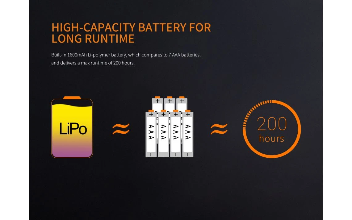 - Power Source: 1 x 1600mAh Li-Polymer Battery (Built-In)