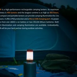 116g, 400 lumens: The Fenix CL26R is a portable multi-directional camping lantern. It is powered by included 18650 Li-ion battery and has maximum output of 400 lumens. It is lightweight and has stylish design. The lantern consist three brightness output at 360°and one switch for easy interface. It is available in three colours; Red, Black & Green. USB rechargeable camping lantern!