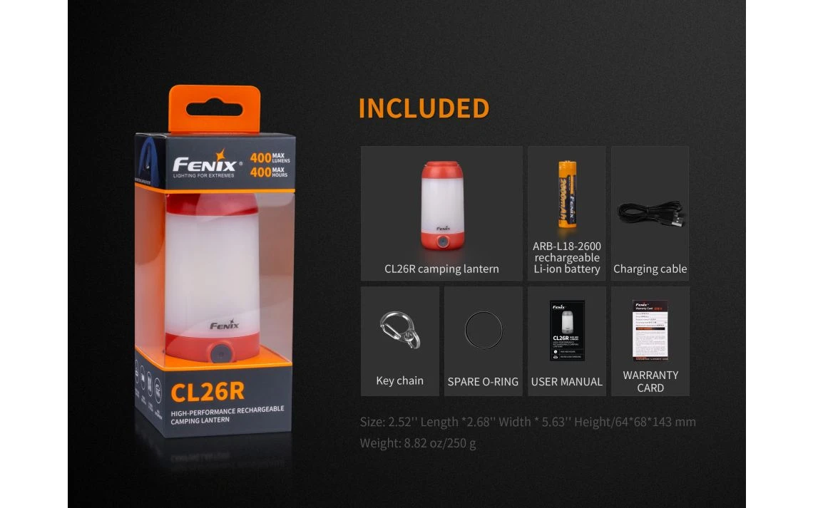 - 1 x Fenix CL26R Camping Lantern
