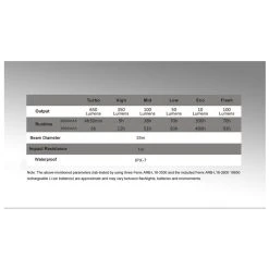 - Brightness Outputs (Using 3 x 3500mAh 18650s):