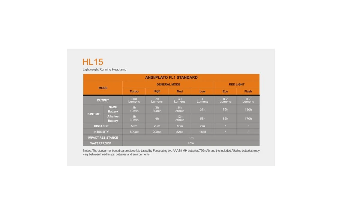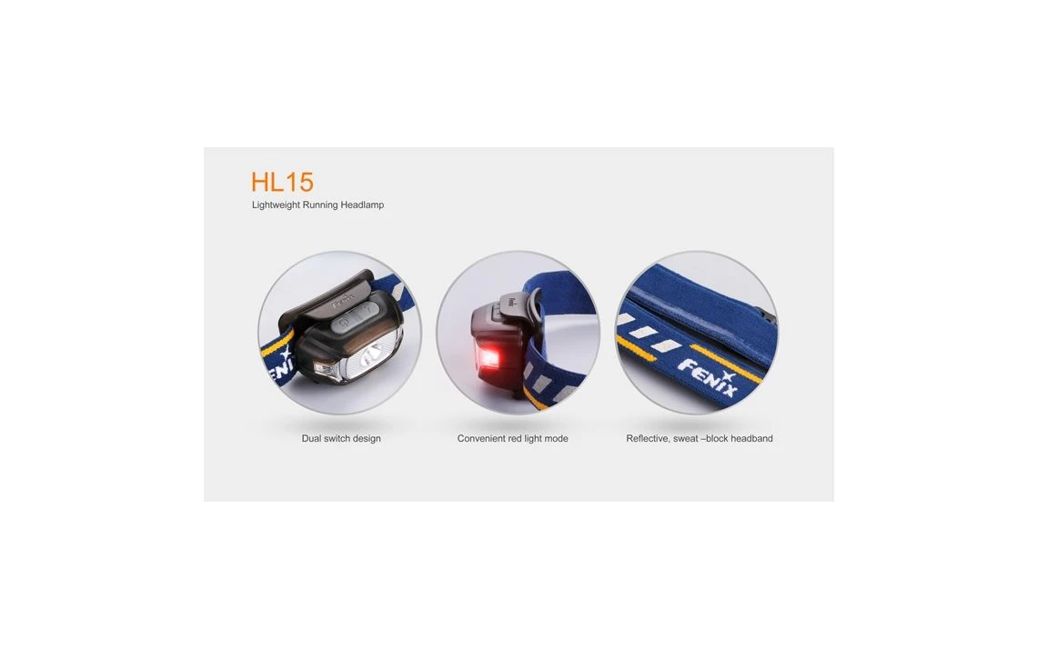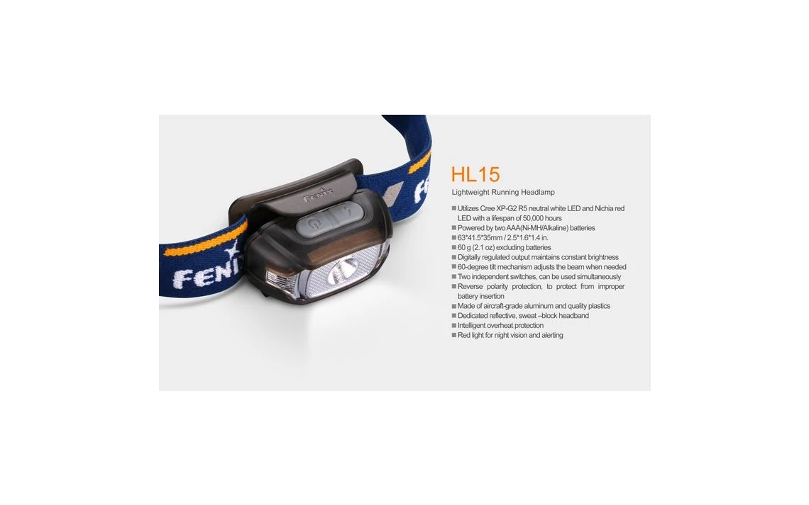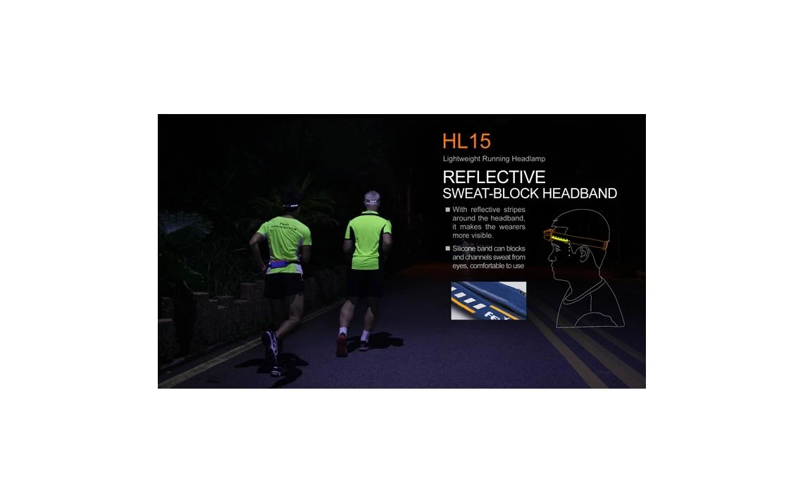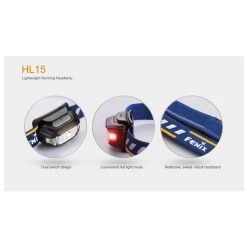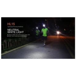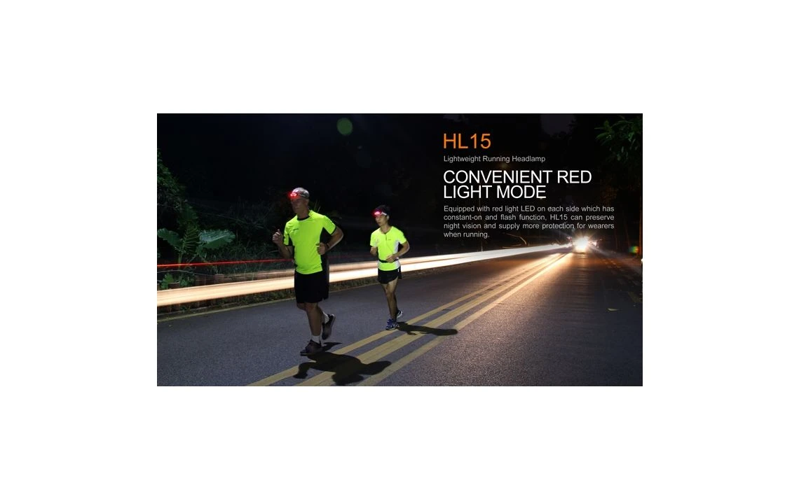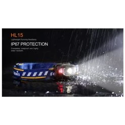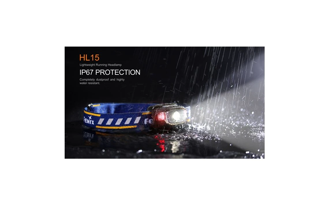 60g, 200 lumens: The Fenix HL15 is a lightweight running headlamp. It is equipped with a reflective headband, one neutral white LED for better color rendering, and two red LEDs to alert others. Featuring four brightness levels plus IP67 waterproof classification, the HL15 is perfect for road running, hiking, camping etc. 2 X AAA batteries included.