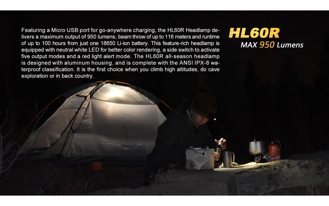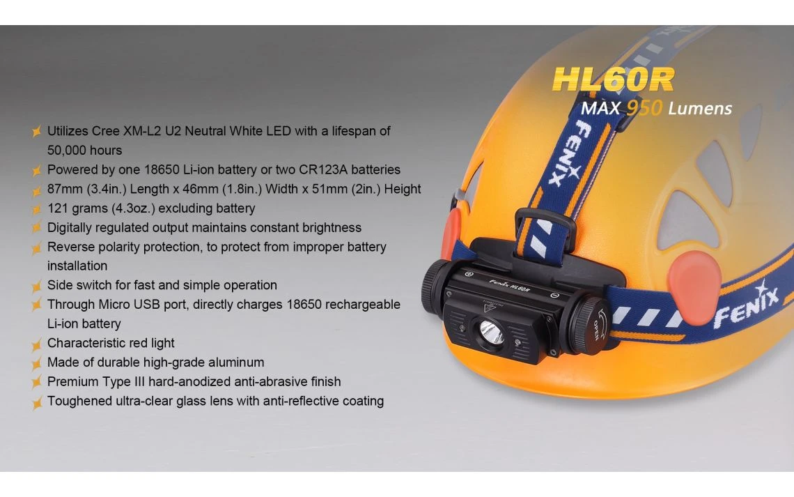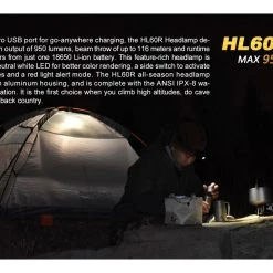 The HL60R all-season headlamp is designed with aluminum housing, and is complete with the ANSI IPX-8 waterproof classification, it’s surely the first choice when you climb high altitudes, do cave exploration or in backcountry.