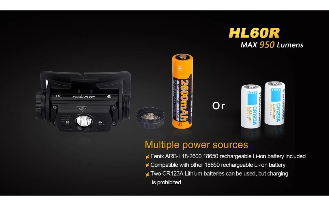 - Powered by one 18650 Li-ion battery (included) or two CR123A batteries