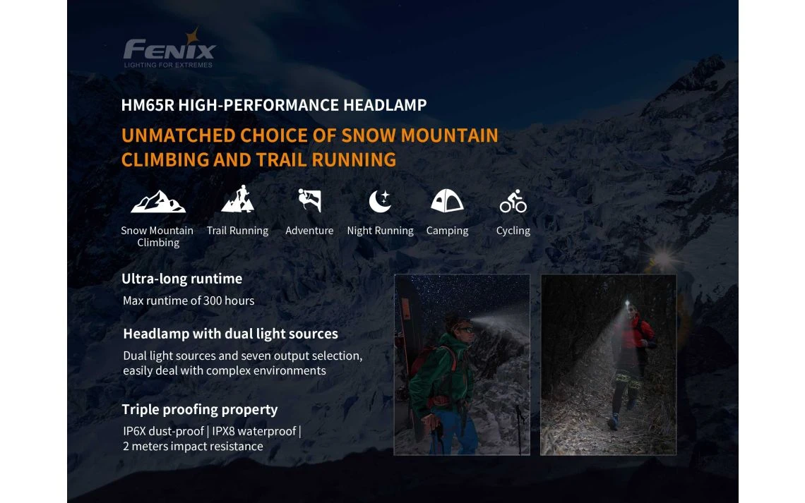 97g, 1400 Lumens :Â The Fenix HM65R is latest dual output source LED headlamp. It is equipped with two LEDs, CREE XM-L2 U2 White and CREE XP-G2 R5 Neutral White with an option of choosing spotlight and floodlight output. It runs on included 18650 battery and can be charged via USB Type C charger. The few features include battery indicator, aluminium alloy built, lightweight design, user-friendly interface etc. Floodlight and Spotlight output rechargeable headlamp.Â
