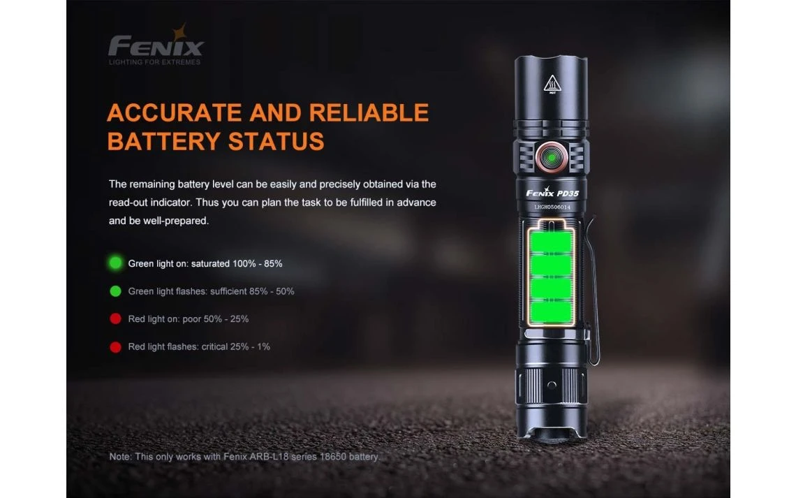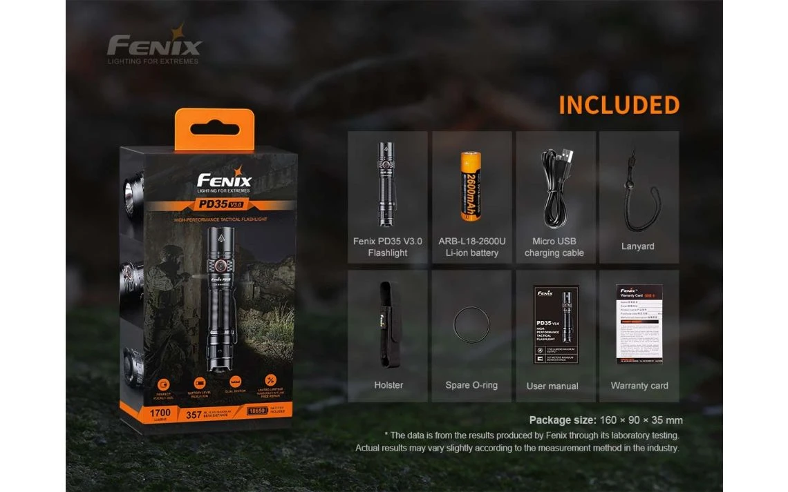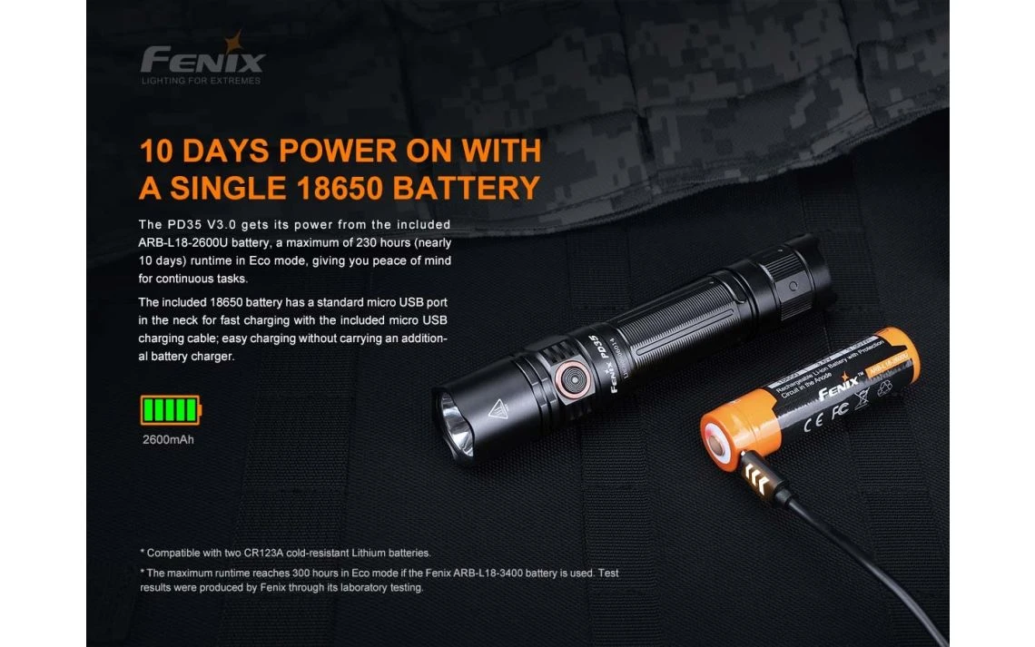 - 1 x Fenix ARB-L18-2600U micro USB rechargeable Li-ion battery