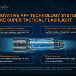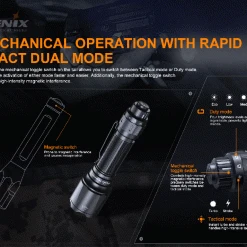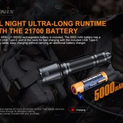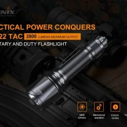156 g, 2800 Lumens: The Fenix TK22 TAC is designed specifically for tactical and on-duty lighting needs, and it features both tactical and duty modes. It’s powered by a 21700 rechargeable Li-ion battery and has a 2800 lumen output with a beam distance of 540 metres. There are five output modes available in Duty Mode, including a strobe. Switching to Tactical Mode allows you to choose turbo and strobe easily. The Fenix TK22 TAC is perfect for professional use, security and law enforcement. It delivers reliable, powerful lighting in a variety of situations. 21700 Powered dual mode outdoor and tactical torch!