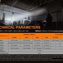 - Turbo: 1,000 Lumens – 3 H 40 Mins*
