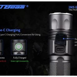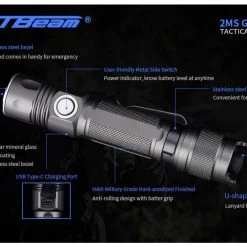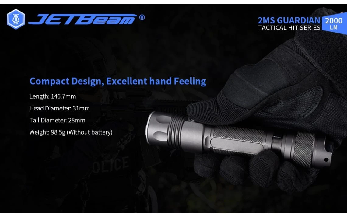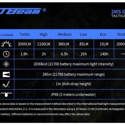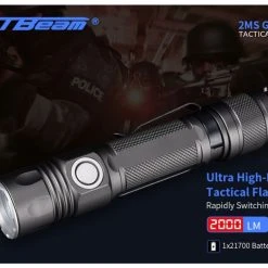 - High-performance tactical torch with a max output of 2,000 lumens and 285m beam distance