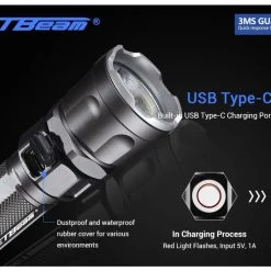 136g, 2,000 Lumens: The JETBeam 3MS is a tactical torch designed for law enforcement, security, military and outdoor use. It utilises a LUMINUS SST-70 LED to produce a max output of 2,000 lumens and a throw of 320 metres. The 3MS features five brightness levels plus a strobe mode which can be controlled via the tactical tail switch and metal side switch. This torch runs off a 5100mAh 21700 Li-ion battery (included) but is also compatible with 20700 or 18650 batteries. The 3MS can be easily recharged via the USB-C fast charging port. The durable build, dual switches and high output make this a reliable tactical torch. 5100mAh 21700 Li-ion battery included.