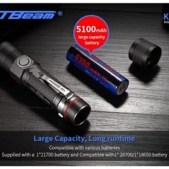 - Runs off one 21700 Li-ion battery (included) and compatible with 20700 and 18650 batteries
