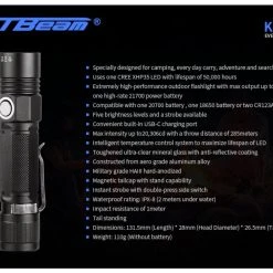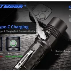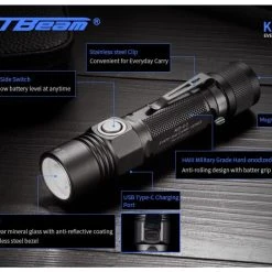 - High-performance tactical torch with a max output of 2,000 lumens and 285m beam distance
