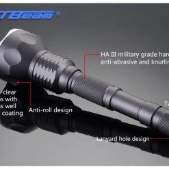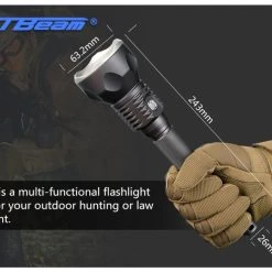 317g, 3300 Lumens: The JETBeam WL-S4-GT is a powerful torch suitable for a range of applications including hunting, law enforcement, security, camping and more. It uses a CREE XHP70 LED to produce a max output of 3300 lumens and a max beam distance of 400 metres. The WL-S4-GT has four brightness levels to choose from as well as a strobe and SOS mode for emergencies. This torch features a power indicator and runs off two 18650 Li-ion batteries but is also compatible with four CR123A batteries. It is constructed from aero grade aluminium and features a military grade HAIII hard-anodised finish. The tactical tail switch allows for easy one hand operation and the side switch allows you to change brightness level and modes. You can also use this torch with a variety of attachments to make this a powerful hunting light. High output and durable multi-purpose torch.