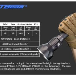 *Data obtained using 2 x JETBeam 3400mAh 18650 batteries