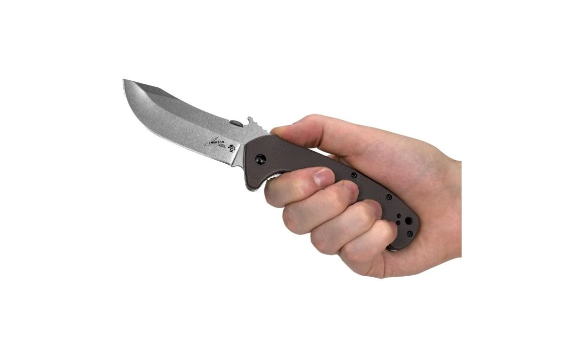 - G10 front scale with stainless steel back and Emerson contouring for secure, comfortable grip