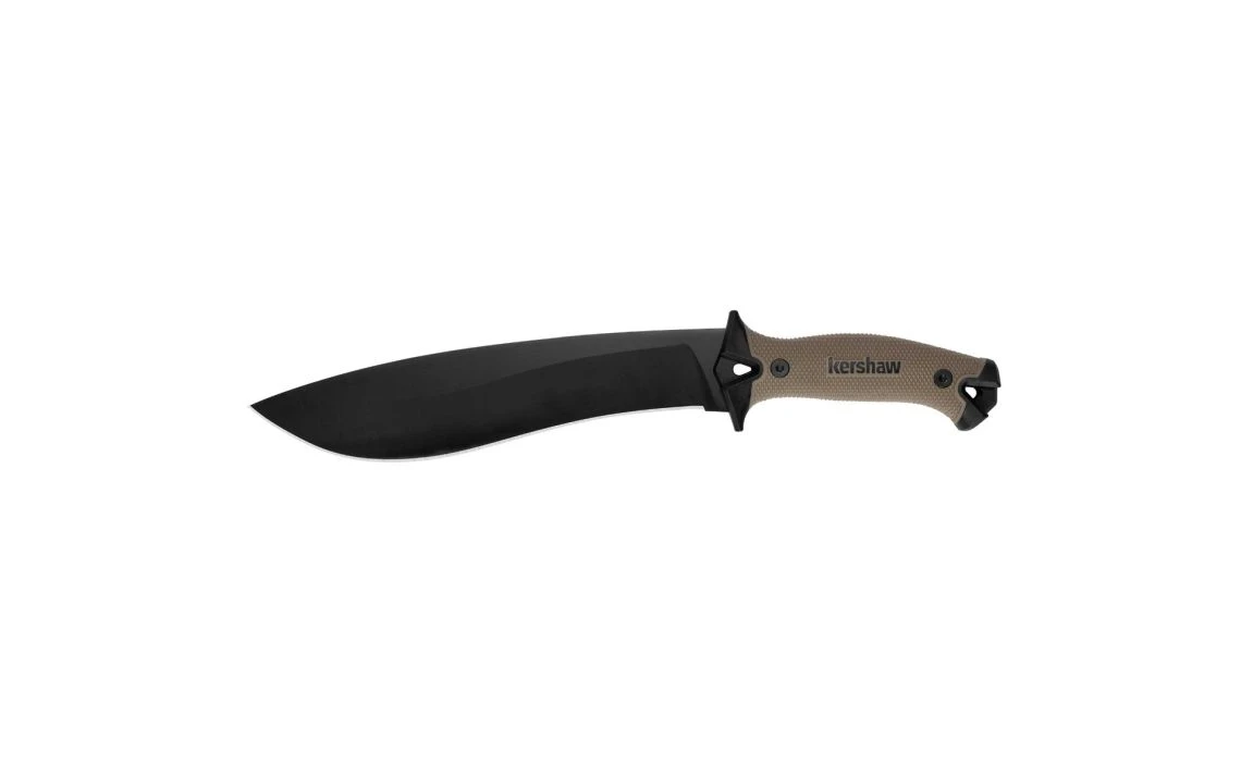 The Camp 10 whacks campsite and other outdoor chores down to size. From clearing brush to making kindling, it’s the ideal outdoor and survival tool. The full-tang Camp 10 is made of carbon tool steel for toughness and wear resistance. A basic black powdercoat protects the steel and makes maintenance easier. The handle has a built-in hand guard and is drilled in both front and rear for lanyard attachment, and carrying versatility.