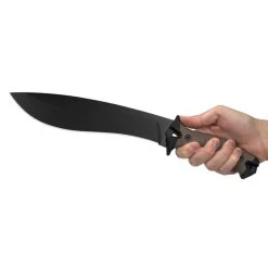 - Big 10-inch blade, full-tang construction, secure rubberized grip