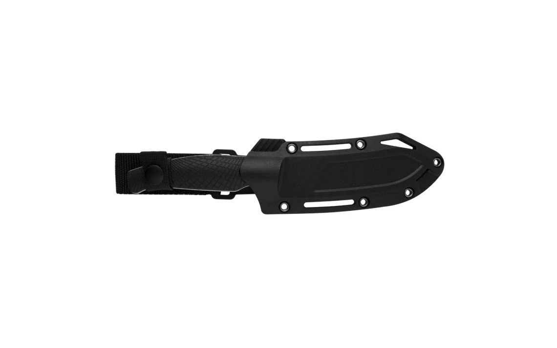 - Sheath:Â Glass-filled nylon with lock, snap-down strap, belt loop, webbing slots, and tie holes