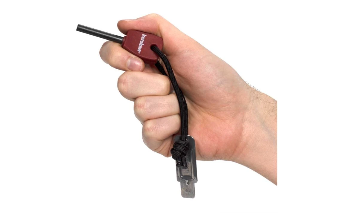 Start a fire even when it’s wet outside. To get your fire going, all you’ll need is a small pile of dry grass, wood shavings, or other flammable materials. Hold the magnesium firesteel shaft close to the pile and quickly draw the striker down the shaft at a right angle to produce sparks. The sparks will ignite the dry materials and, as the fire becomes established, you will be able to gradually add larger materials to the fire until it is at the desired size. Rain, snow, or whatever Mother Nature can dish out, with this magnesium alloy fire starter, you’ll be able to achieve the spark you need to get your fire going. Small enough to fit in your driest pocket. Makes an essential addition to your dry-box supplies.