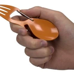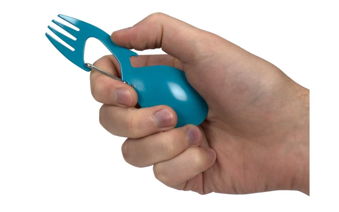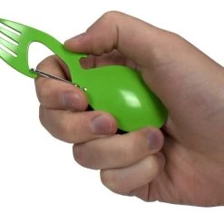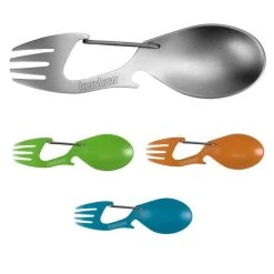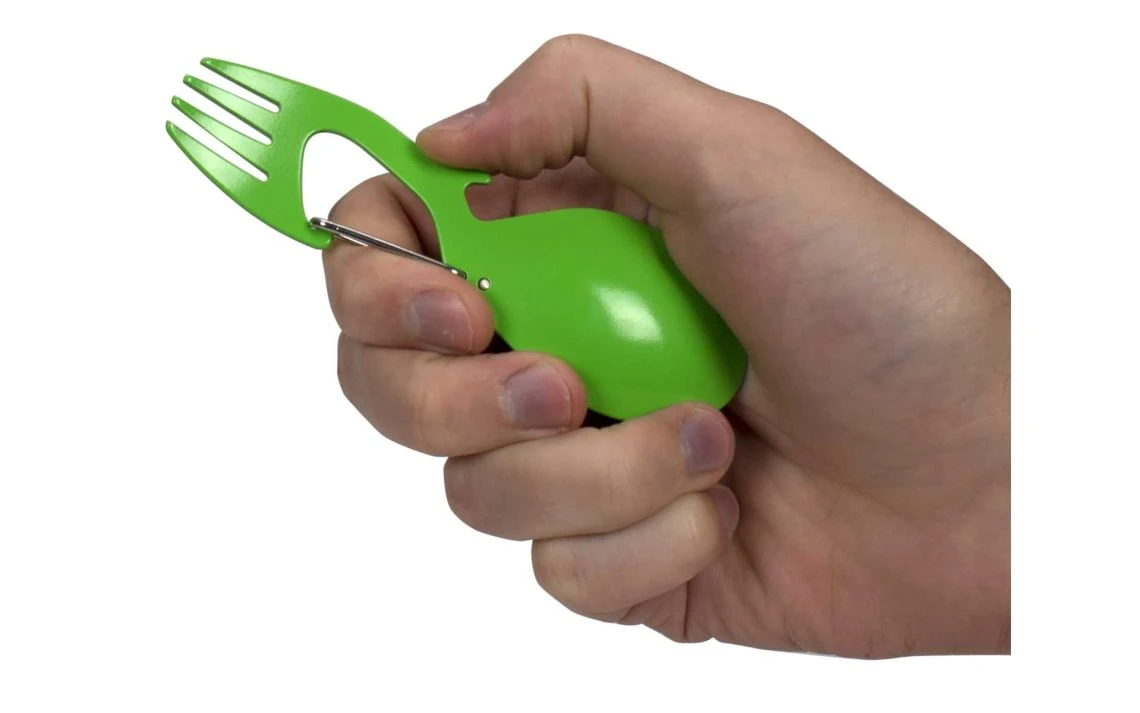 - Includes fork, spoon, bottle opener, carabiner gate clips to backpack, briefcase, or purse
