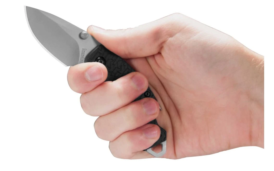 Once you get your hands on this handy little knife, you’ll see how nicely the finger contours fit your hand, how useful that stubby little blade really is, and how Kershaw’s K-Texture on the handle provides an extra secure grip. But this multifunction tool also has a flathead screwdriver at the butt of the knife, which doubles as a lanyard attachment. There’s even a handy bottlecap lifter built into the back of the knife.
