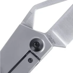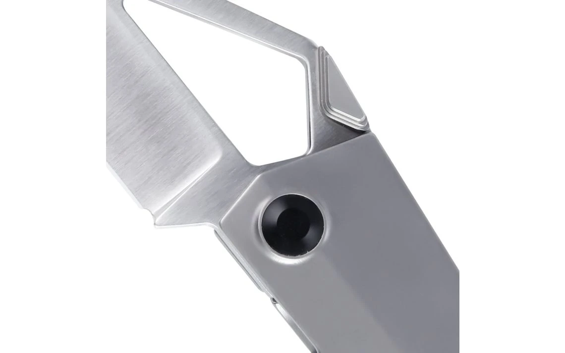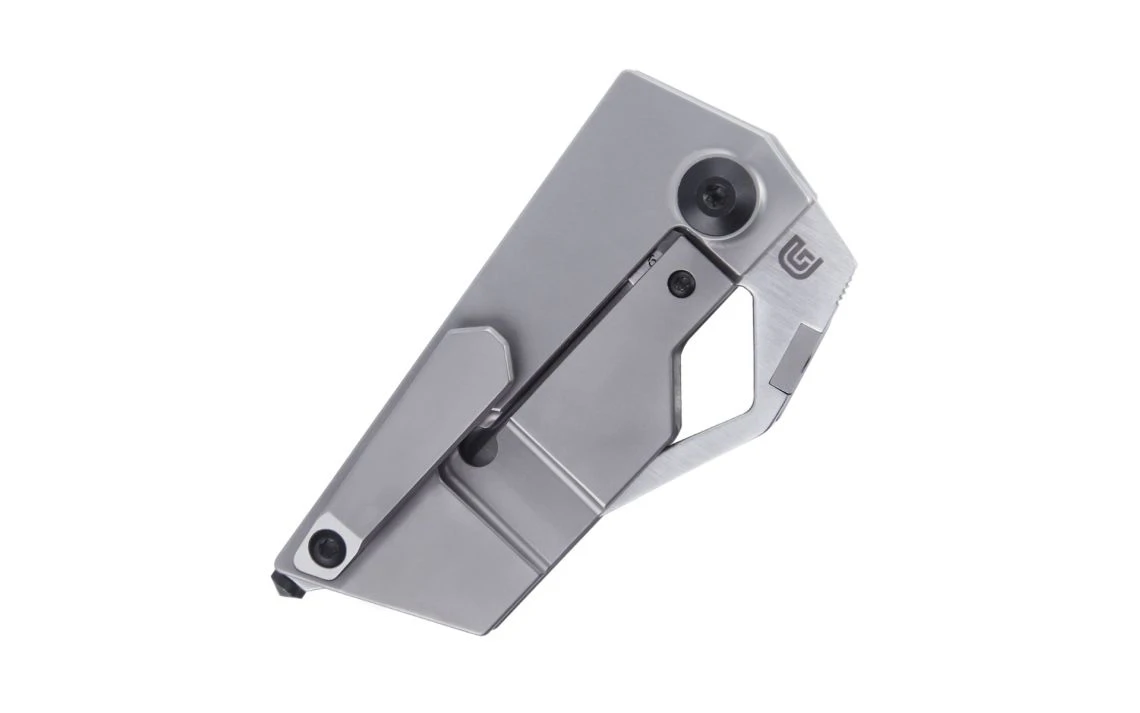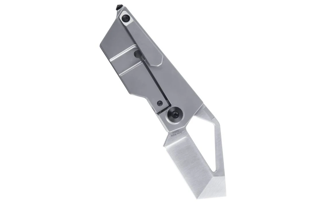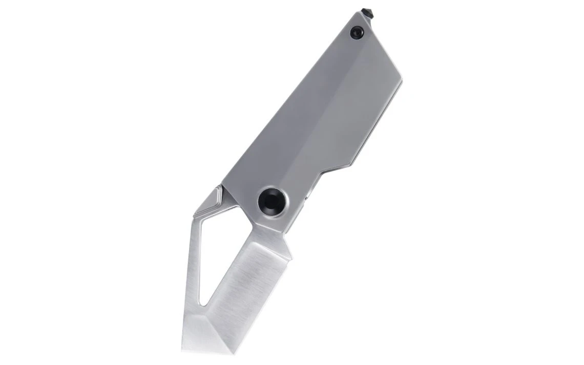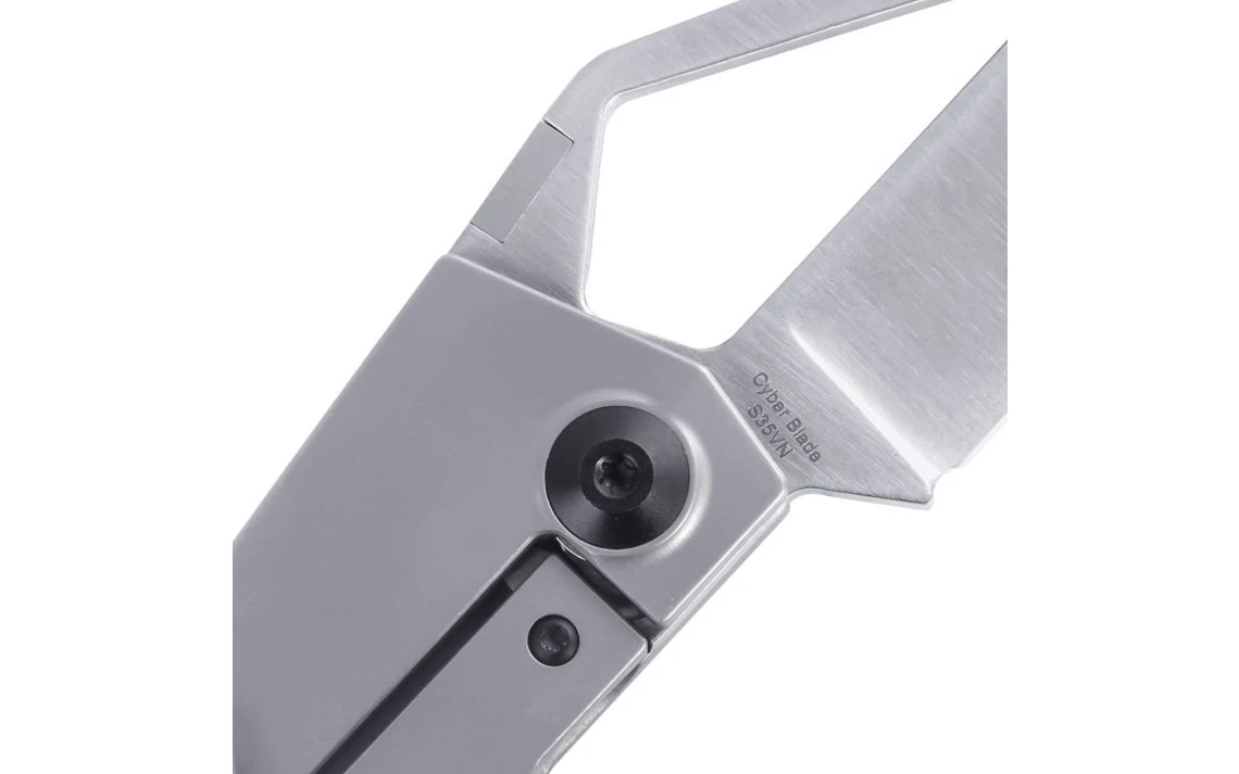 The Cyber Blade design was inspired by the Tesla Cybertruck. It has a titanium gray handle with a satin finished CPM-S35VN modified tanto blade. The blade overall is great for cutting through tough boxes or cables. To top off the design, a glass breaker tip has been added. The unique thumb stud is easy to locate and the widened pocket clip allows a firm hold as it sits in your pocket.