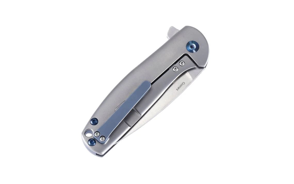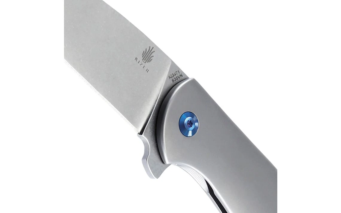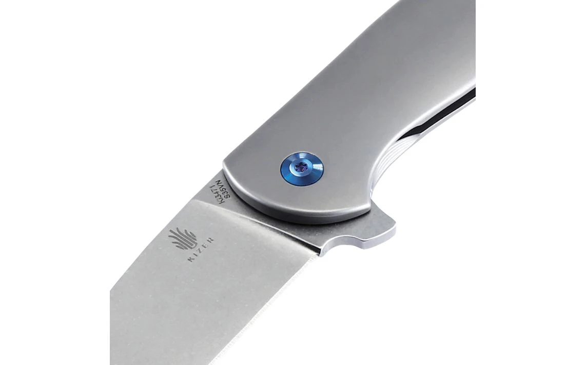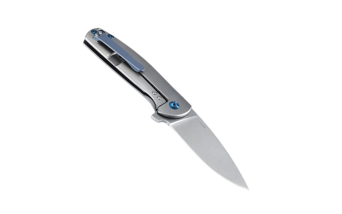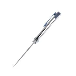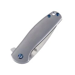 Designed by Ray Lacconico. Gemini is a titanium frame lock knife with a satin CPM-S35VN steel blade. The fit and finish are outstanding and the action is smooth as can be. It has a bead-blasted titanium handle with titanium backspacer, blue anodized pocket clip(Rides nicely in the pocket and is very discrete), blued hardware, and a steel lock bar insert.