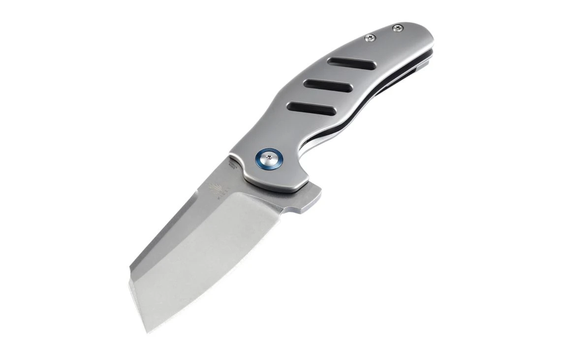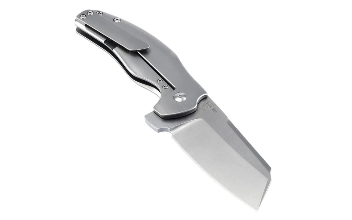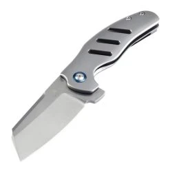 This Kizer Mini Sheepdog knife offers a more compact version of the cleaver design from Chris Conaway of Sheepdog Knives. Premium CPM-S35VN blade steel provides excellent wear resistance and edge retention. The blade deploys effortlessly on a smooth ball bearing pivot, and locks up solid. A titanium handle offers top-notch durability and a lightweight frame. It is a great companion for any hiker, landscaper, backpacker, hunter, wilderness guide, electrician or anyone in need of a reliable everyday carry.