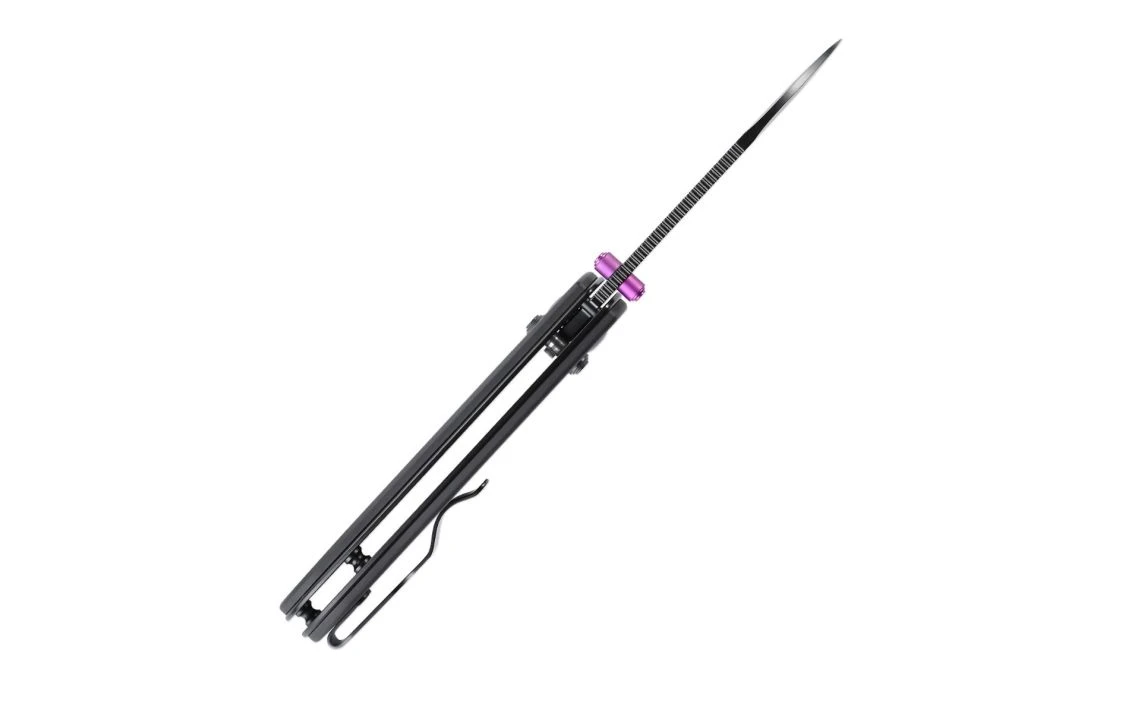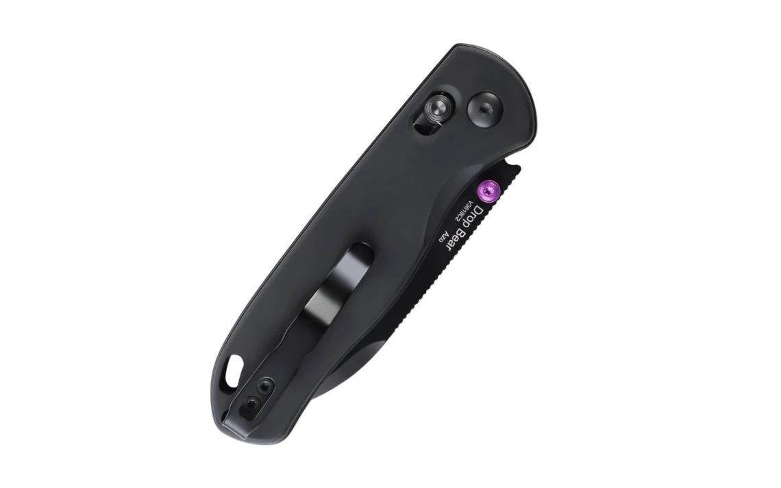 The material of the Drop Bear is 154CM. 154CM Steel Blade delivers excellent edge retention, and corrosion resistance, and is suitable for heavy cutting applications. The top of the blade is designed to be non-slip, and the shape of the blade is also perfect. The handle material used is aluminum alloy. It is comfortable and neutral meaning amenable to any kind of grip. In addition, we have a black holding clip at the handle.
