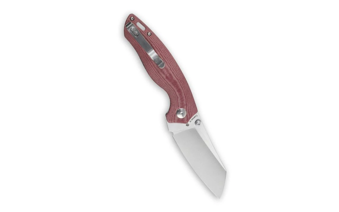 - Red micarta handle scales.