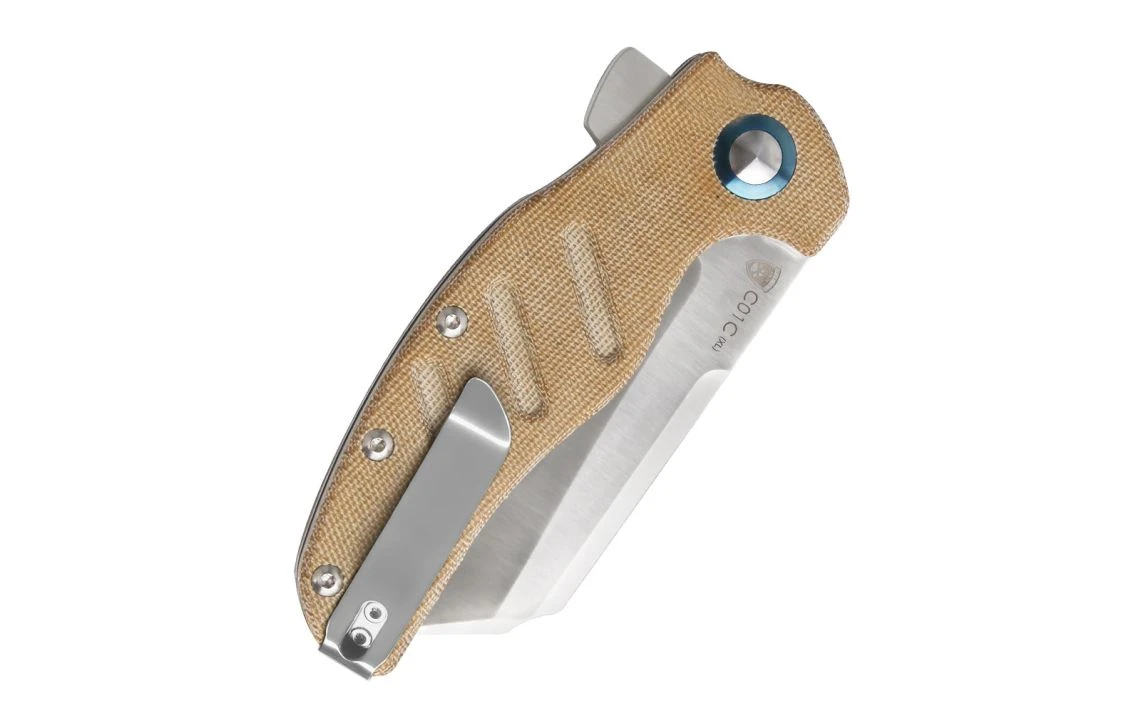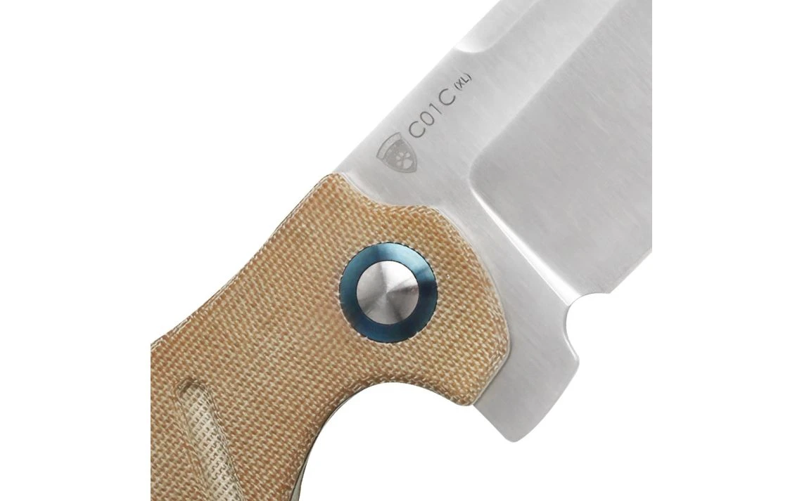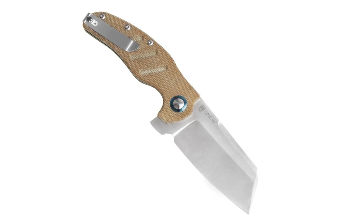 Sheepdog  C01C XL is a beast with 3.94’’ 154CM steel. The blade deploys effortlessly on a smooth ball-bearing pivot and locks up solid. Brown Micarta handle scales provide a comfortable grip and a lightweight build. This knife offers a remarkable combination of tactical functionality and a refined, stylish appearance. Â