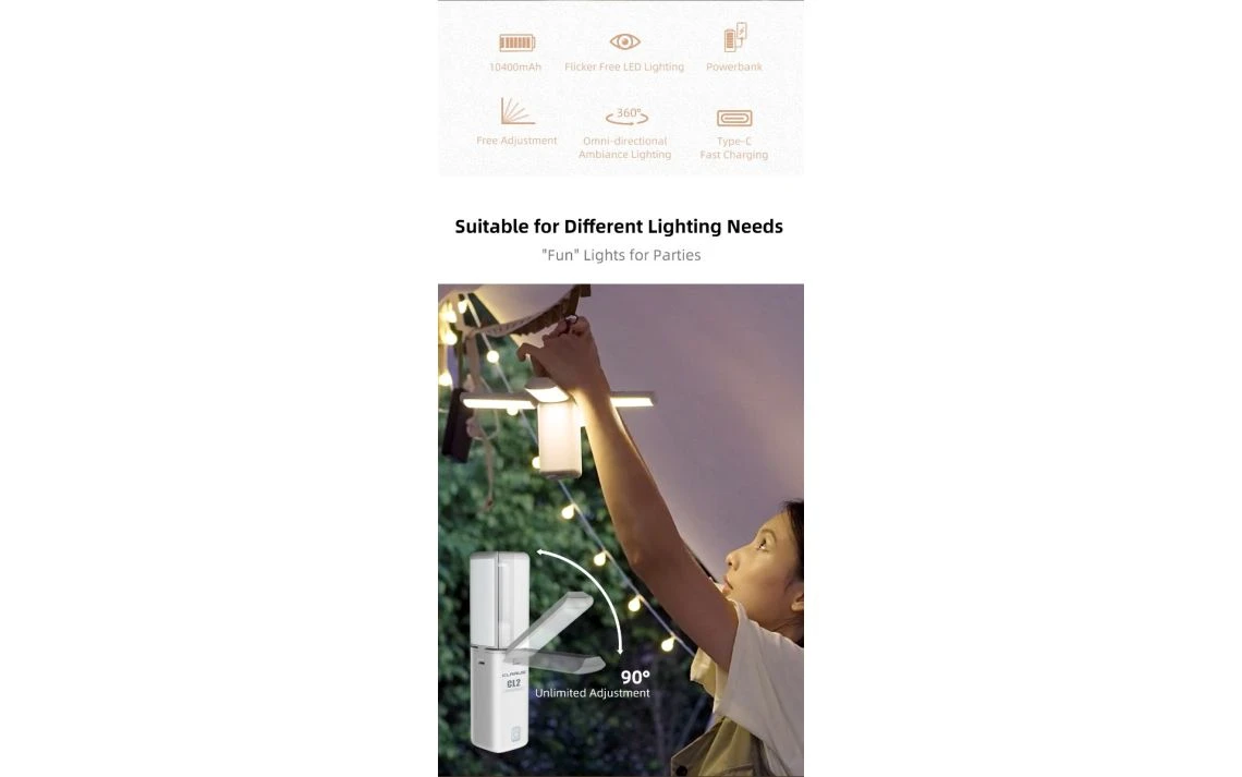 - Maximum brightness 750 lumens, four 90° adjustable angle lights so you can change the direction of the light at will avoiding directly into eyes or disturbing others. Expand/collaps: can be hung on tent/placed on table.