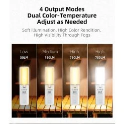 - Warm High: 750 Lumens – 4.75 Hrs