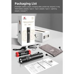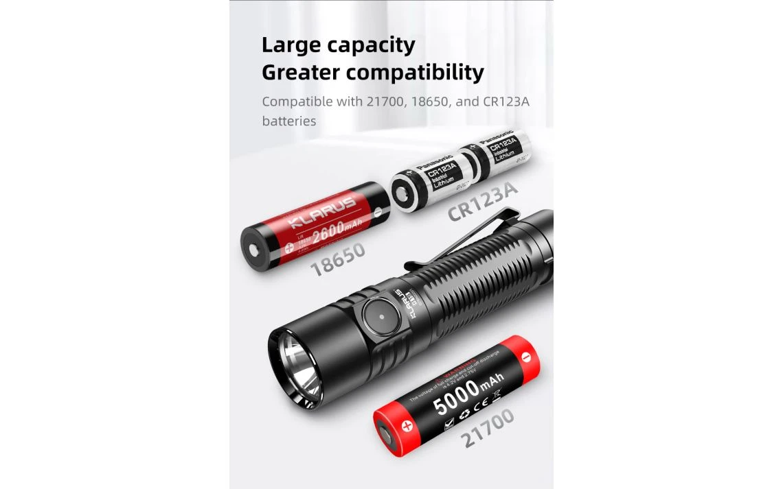 - 1 x Klarus 5000mAh 21700 rechargeable Li-ion battery