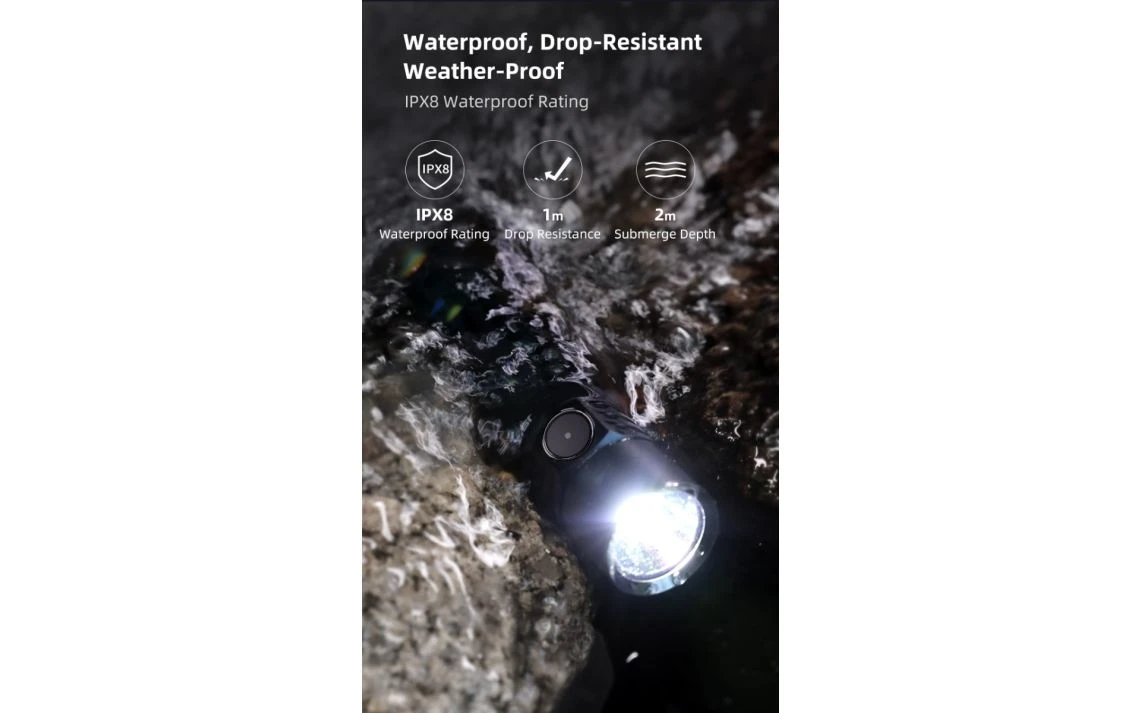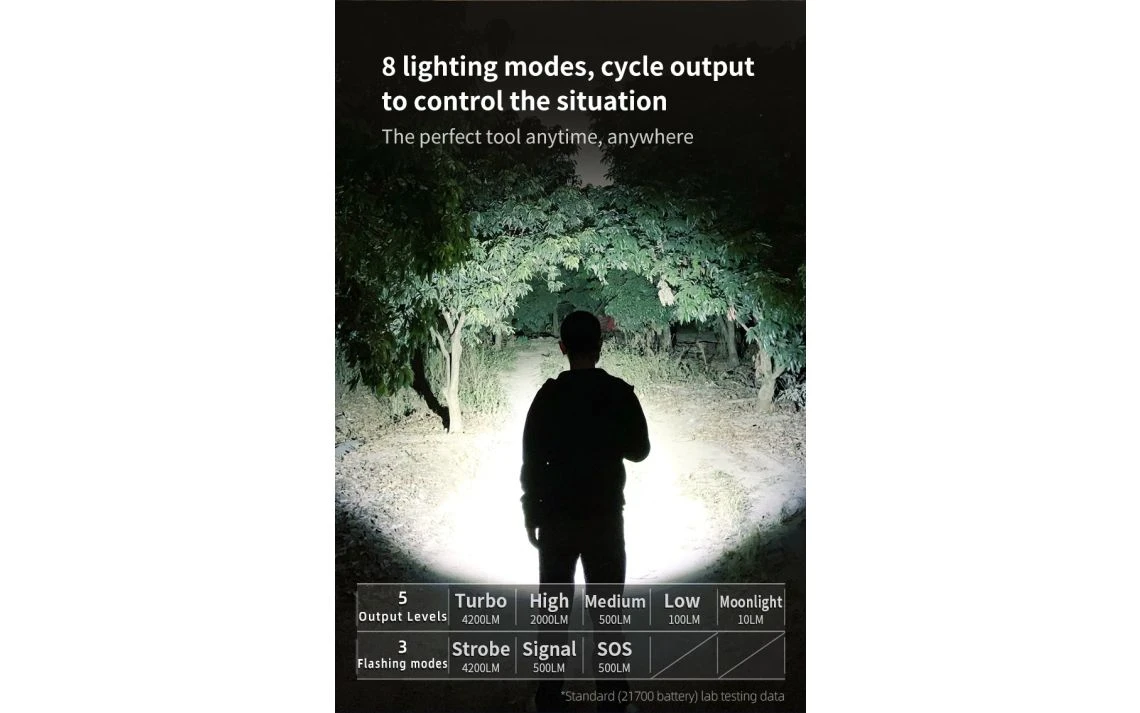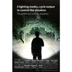 - 8 output modes including strobe, beacon and SOS for any situation.
