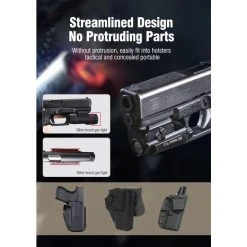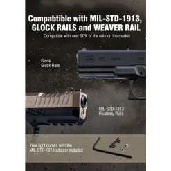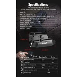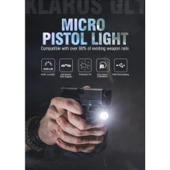 60.5g, 600 Lumens: The Klarus GL1 is an ultra compact rechargeable pistol light that has a constant output of 600 lumens and a max beam distance of 83 metres. The pistol light has a built in 260mAh battery with a runtime of up to 1 hour and is USB rechargeable. The GL1 is compatible with over 90% of weapon rails on the market and comes with a rail adaptor. Its streamlined design with no protruding parts means it can easily fit into holsters too. Compatible with over 90% of existing weapon rails.