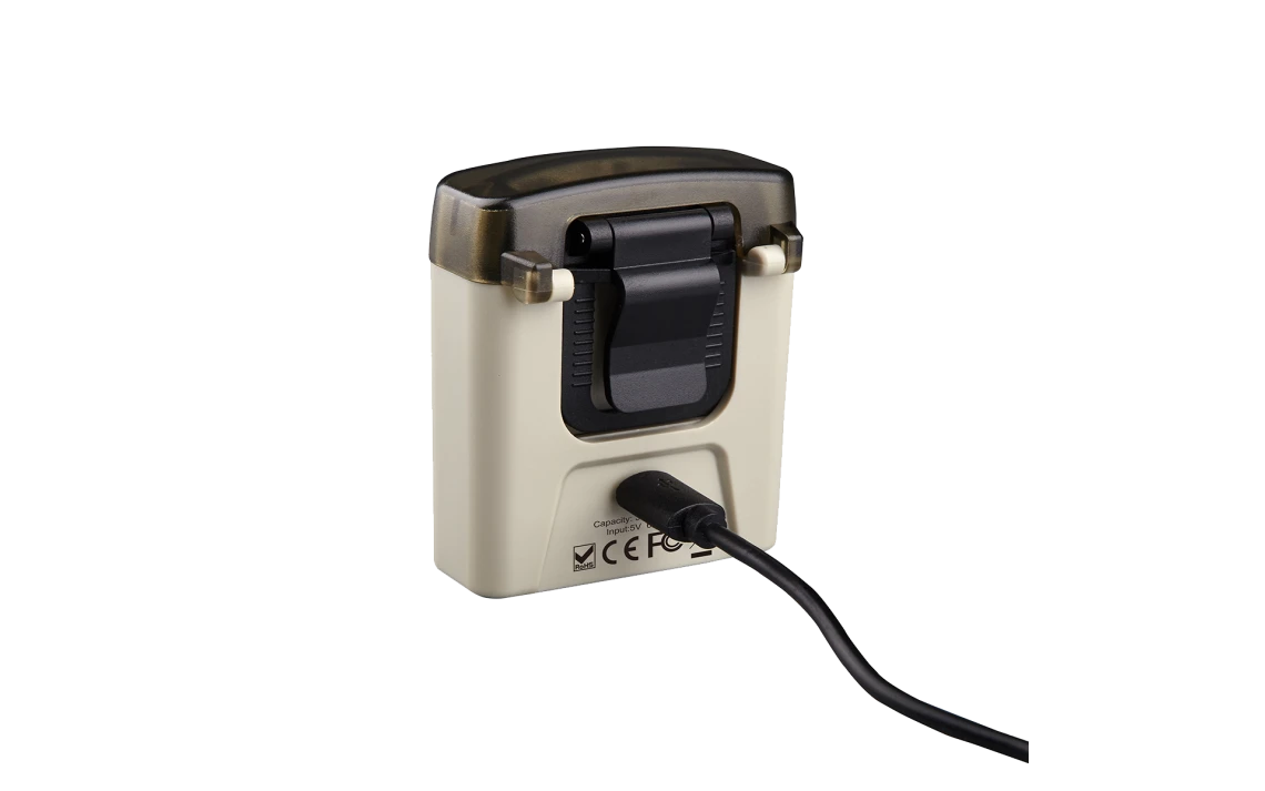 - Runs on: 500mAh battery (built into light) and 600mAh battery (built into case)