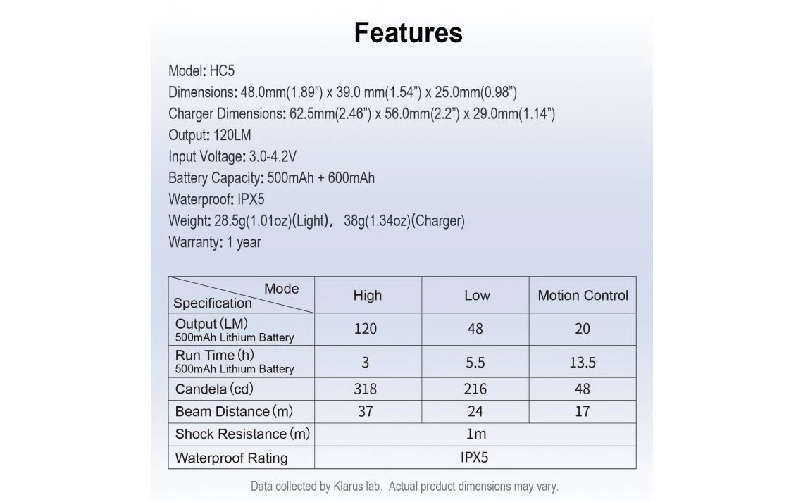 28.5g, 120 Lumens: The Klarus HC5 visor clip is a motion sensing rechargeable head light that can be clipped onto hats and other headwear. The HC5’s motion detector means you can control the light simply by waving or by using the fluorescent button. It runs on a built-in Li-ion battery pack and can be charged via the included USB cable and in its charging case. This light can be adjusted to illuminate from any angle and is perfect for a range of activities including fishing, running, hiking, camping and repair work. Rechargeable motion-sensing clip headlamp!