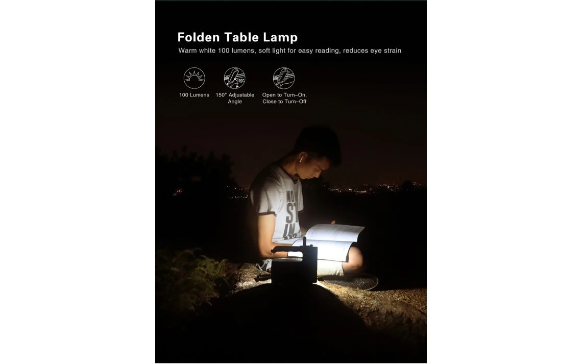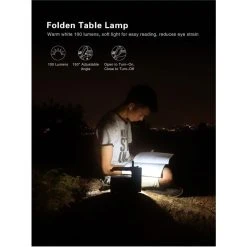 - It also has 100 Lumens folden table lamp, warm white light, soft light for easy reading, reduces eye strain, 150°Adjustable Angle.