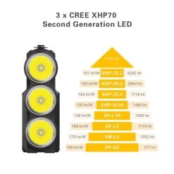 - LED: 3 x CREE XHP70 2nd Gen. 6500K. LED Ultra configured