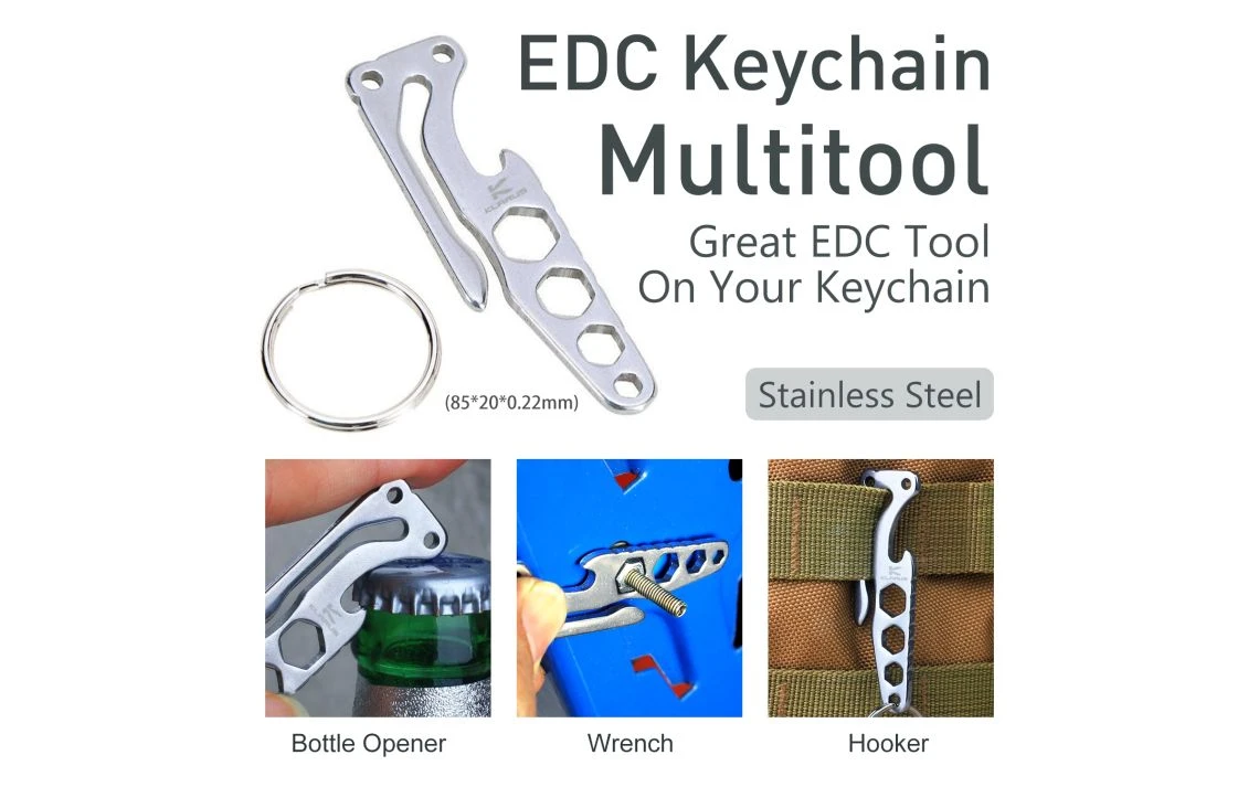 The Klarus EDC keychain multi tool is a useful and versatile tool to keep on your keychain. It is made of stainless steel and can be used for a variety of purposes including a bottle opener, multiple sized wrench or a hook.