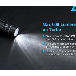 - Turbo: 180 Lumens – 1 H 20 Mins