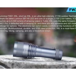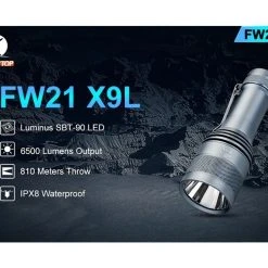 300g, 6500 Lumens, 163,800cd: The Lumintop FW21 X9L is a new 21700 powered compact thrower and is available in this stunning copper finish. Equipped with Luminus SBT-90 LED it has a maximum output of 6300 lumens with 810 metres of throw. The X9L has an ergonomic stylish design and is compatible with 21700 and 18650 batteries via the included battery tube. The X9L inherits Anduril firmware and has features likes smooth ramping, stepped mode setting, strobe, muggle mode and more. Available in Luminus SBT-90 LED. 3000mAh rechargeable 21700 battery included. Compact powerful thrower!