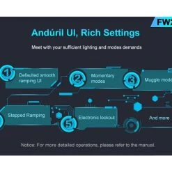 - User interfaces: [1] Defaulted SMOOTH RAMPING. Instant access to TURBO mode is also provided. [2] STEPPED RAMPING UI. [3] MOMENTARY mode. [4] MUGGLE mode. [5] Electronic LOCKOUT.