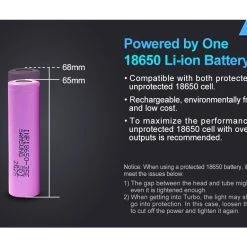 - Power Source: 1 x Unprotected 18650 (Samsung 3500mAh Li-ion Rechargeable 18650 Battery Included – ADD charger if required!)