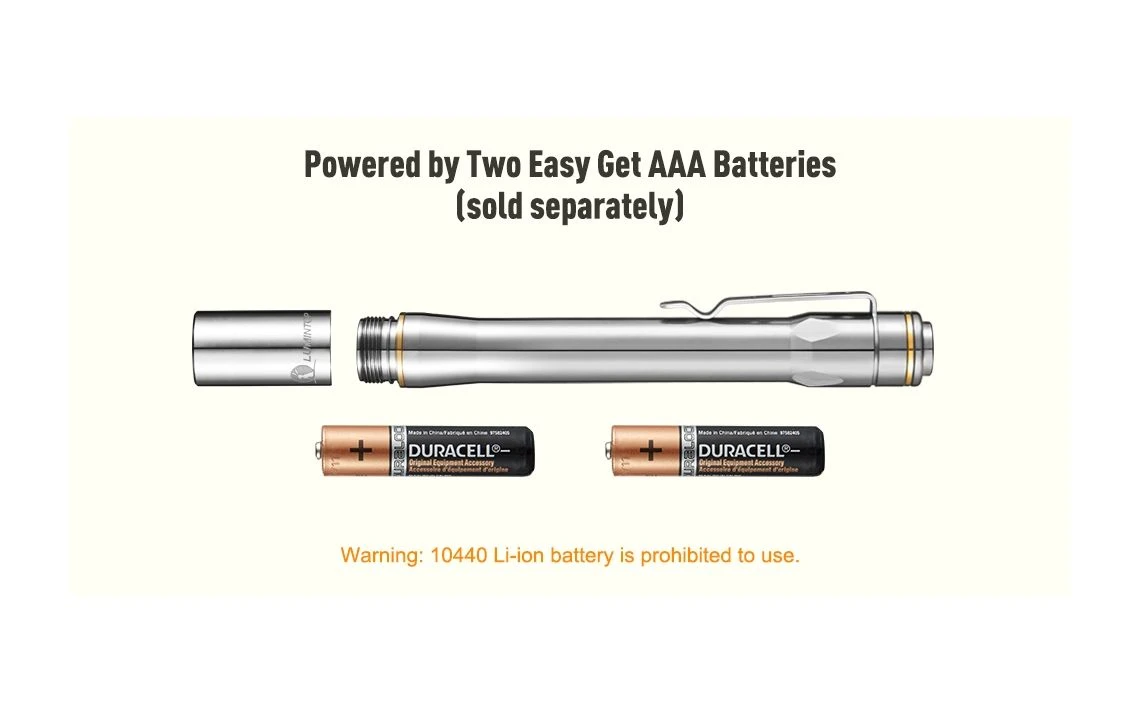 - Runs on: 2 x AAA (NOT included) (10440 Not Recommend)