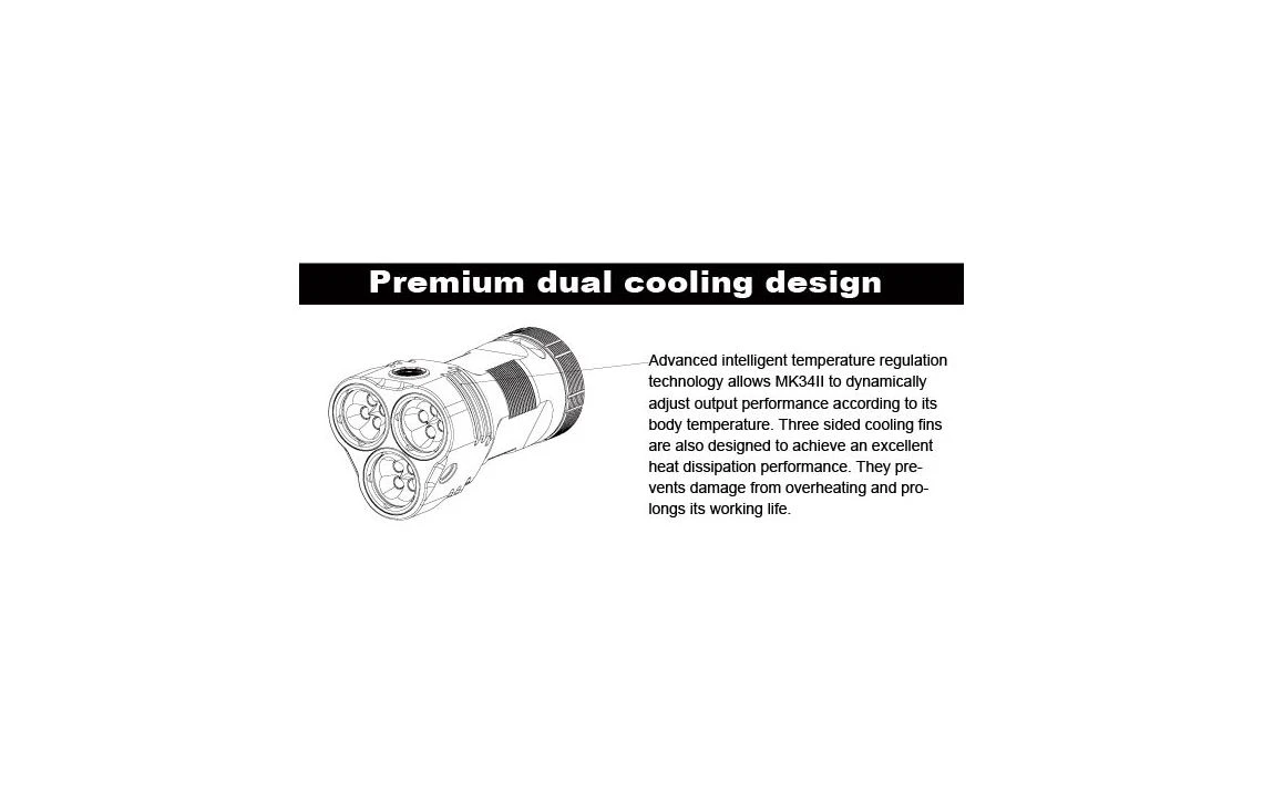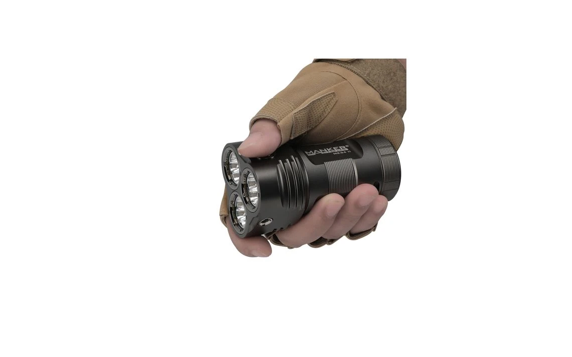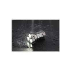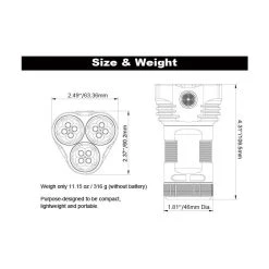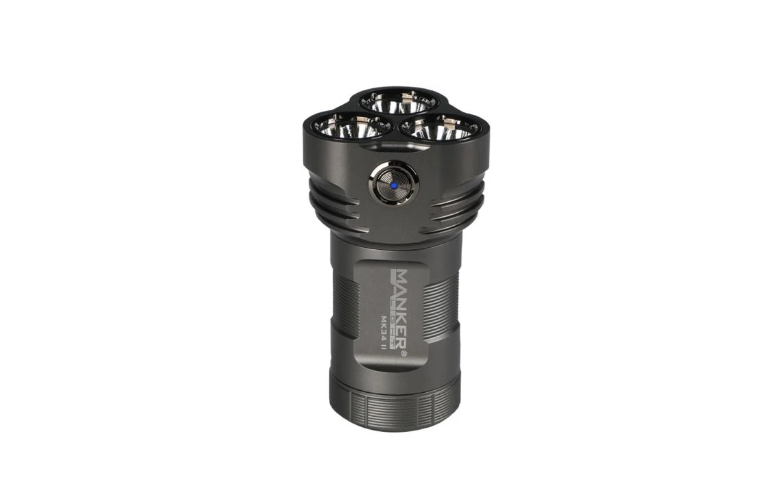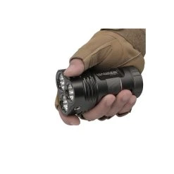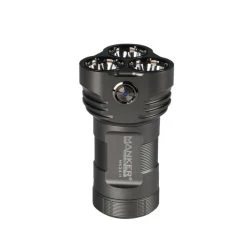 462g, 26,000 Lumens: The Manker MK34 II is a compact yet super powerful searchlight with a max output of 25,000 lumens. It is only 11cm long which makes it easy to hold in one hand but has an incredible output for its size. There are three different LED types to choose from, each with different output levels and colour tints. There are 12 LEDs in the front of the torch and a 3 set of micro-orange peel quad-core reflectors provide uniform and softer extensive peripheral illumination. It is powered by three high drain 3100mAh 18650 Li-ion batteries which are included. The MK34 II has an easy user interface which allows you to access seven levels of brightness plus a strobe mode. It comes with a quality holster, lanyard and the built in tripod port allows you to attach it to a tripod for additional mounting options. This torch also has a durable build quality and features a range of safety features to ensure safety at these high levels of output. Incredibly bright output from a compact body.